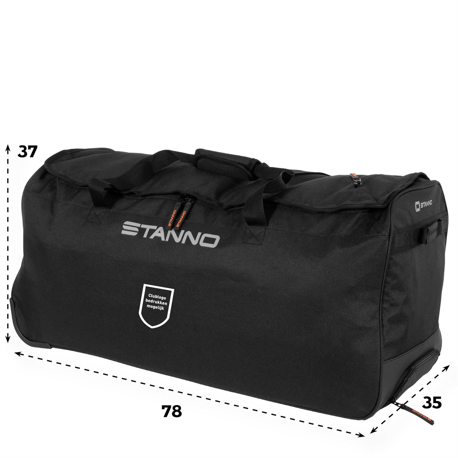 In de Premium Team Trolley bag is ruimte voor de tenues van het hele team. De trolley heeft verstevigde bodem, een u-vormige rits en stevige handgrepen. De tas bevat een verborgen uitschuifbaar handvat en wieltjes van siliconenmateriaal, zodat je de tas kunt rollen als een koffer. De bovenklep is bovendien voorzien van een ritsvakje. Over de schouder dragen kan ook: de tas bevat twee grote schouderbanden. Afmetingen: 37x78x35 cm (HxBxD).